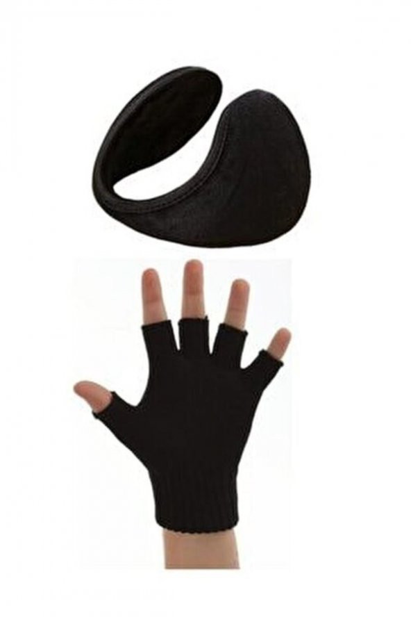 Ense Tipi Kışlık Polar Kulaklık Ve Kesik Parmaksız Eldiven
