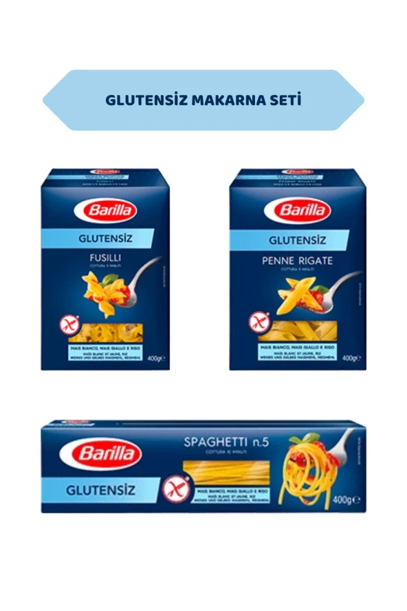 Barilla Glutensiz Makarna Seti -Penne 400 gr, Fusulli 400 gr, Spagetti 400 gr-