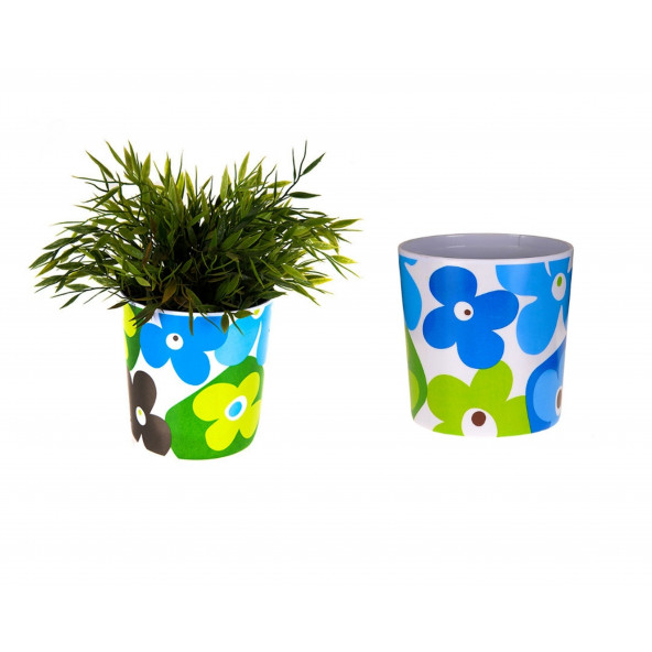 SIA Z16979 Saksı,Mavi Papatyalı Melamin Çiçeklik 14x14cm