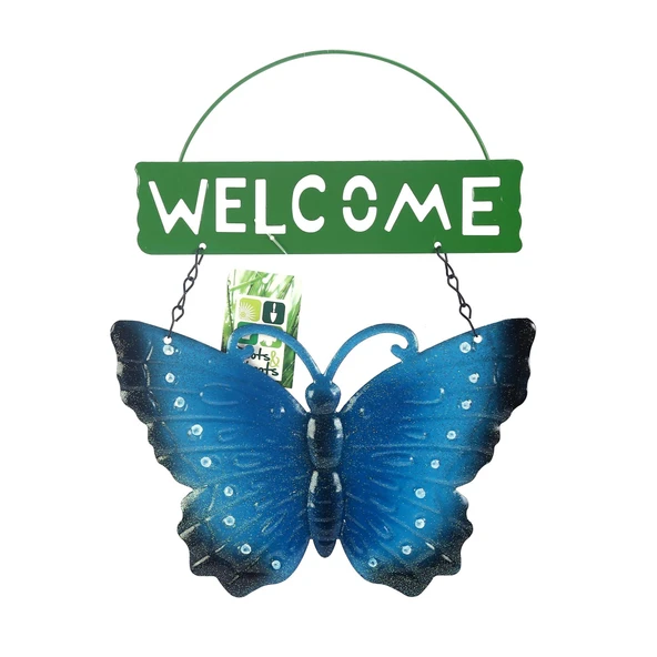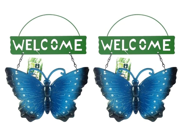 2 ADET BALKON VE BAHÇE HOŞGELDİNİZ TABELASI MAVİ KELEBEK 28X20X3CM