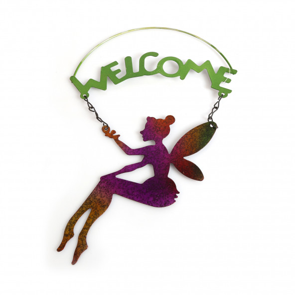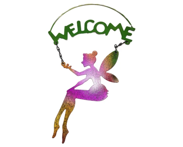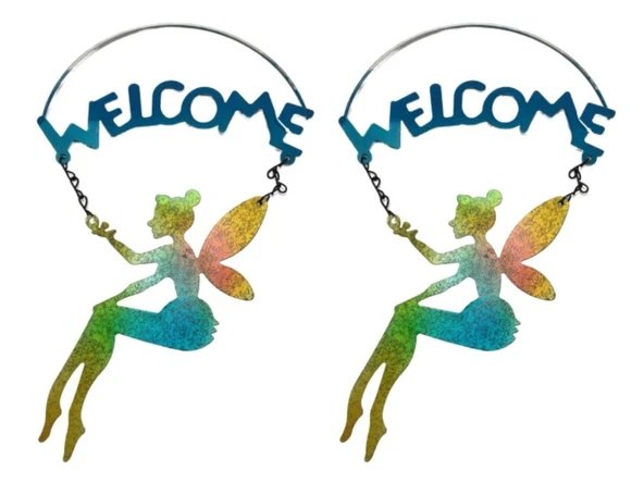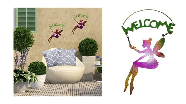 2 Adet Balkon Ve Bahçe Hoşgeldiniz Tabelası,Melek Figürlü 30x18x0,5cm
