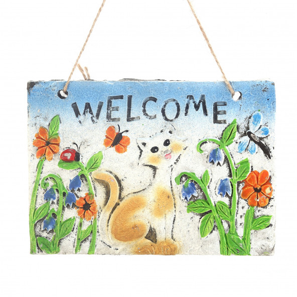 ASILABİLİR BALKON VE BAHÇE SÜSÜ HOŞGELDİN KEDİLİ 21X16X1,2CM