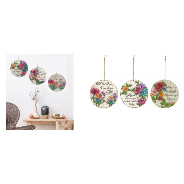 956282B ASILABİLİR BALKON VE BAHÇE SÜSÜ GULLU,ANNE TEMALI YUVARLAK 15X15X1,1CM