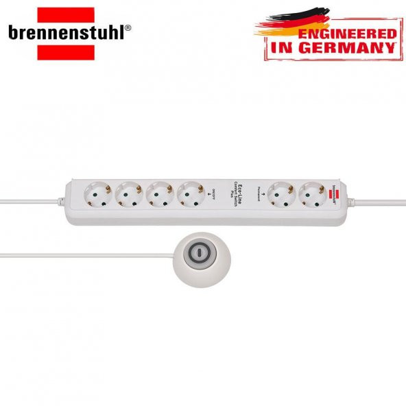 Brennenstuhl Eco-Line Comfort Güvenlik Anahtarlı 6'lı Uzatma Priz