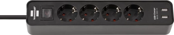 Brennenstuhl 2 X USB Hızlı Şarj Özellikli 4 Soketli Priz Siyah