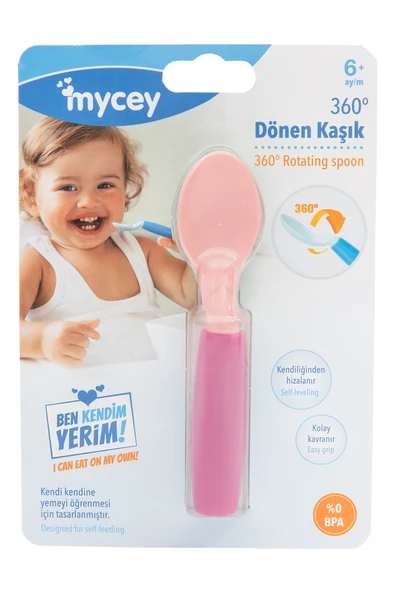 mycey Baby Girl Atıştırma Kabı/360⁰ Dönen Kaşık/Bebek Önlüğü 10'lu