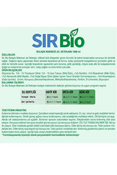 SIR Bio Bio Bitki Özlü Bulaşık Makinası Deterjanı 1000 Ml 40 Yıkama