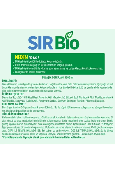 SIR Bio Bio Bitki Özlü Bulaşık Makinası Deterjanı 1000 Ml 40 Yıkama