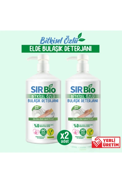 SIR Bio Bitkisel Özlü Elde Bulaşık Deterjanı 1000 ml Pompalı Şişe (1000 ML X 2 ADET)