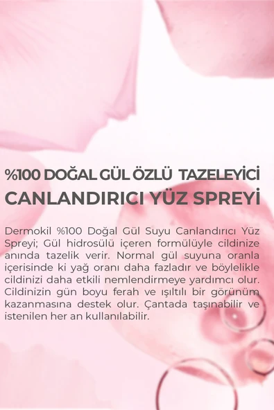 Dermokil %100 Doğal Gül Suyu Canlandırıcı ve Tazeleyici Yüz Spreyi 50 ml