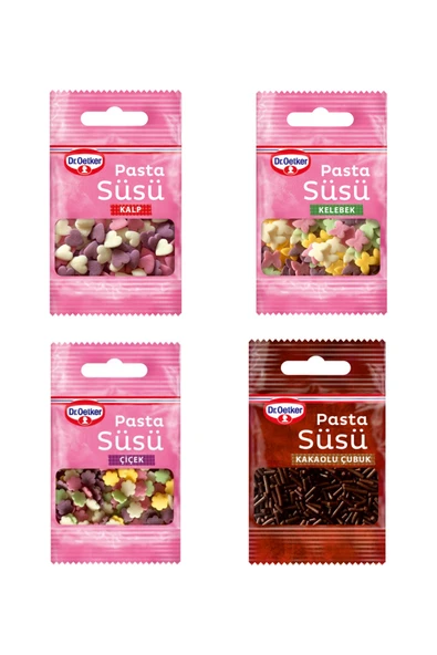 Dr. Oetker Pasta Süsü Şekerli Çubuk-kalp-kelebek-kakaolu Çubuk 4'lü Set
