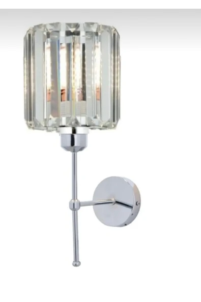 Buiva Pilli Duvar Aplik Kristal Taşlı Kablosuz Pilli Aplik Aç Kapa Butonlu Krom Kaplama