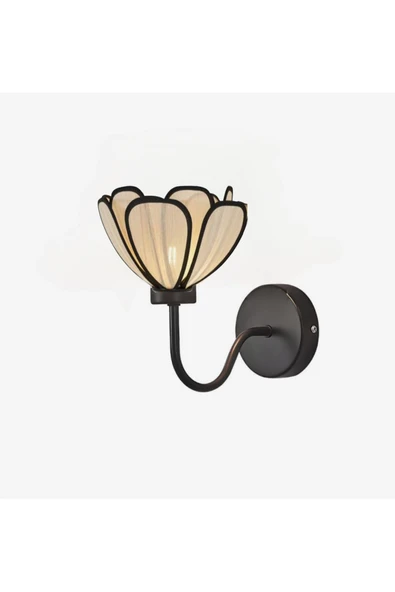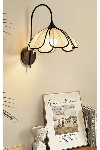 burenze Modern Tasarım Rose Çiçek Duvar Apliği Kablolu Elektrikle Çalışır Siyah Gövde Ekru Kumaş