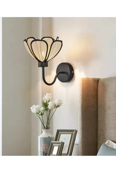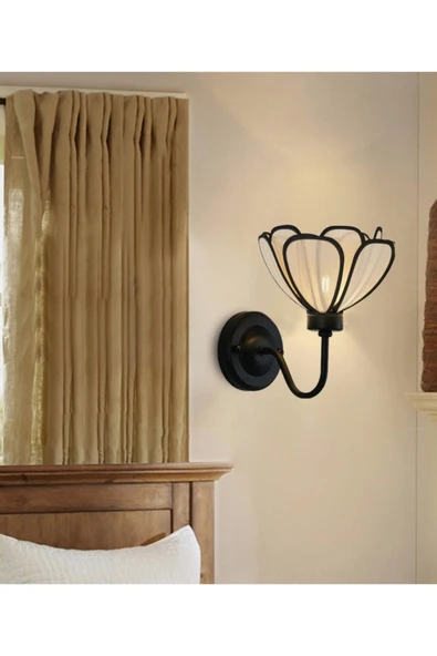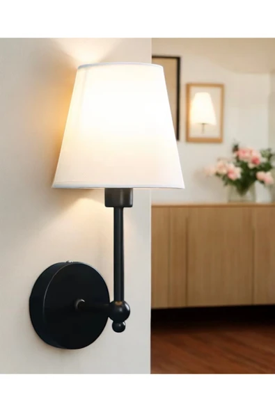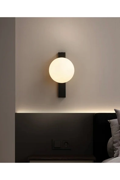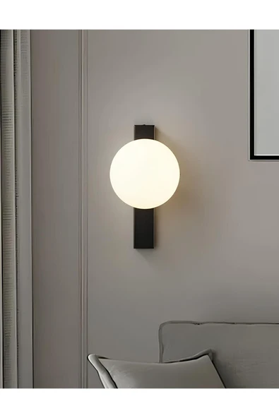 Fico Home Duvar Aplik Siyah Gövde Beyaz Glop Cam E-27 Duy Modern Aplik