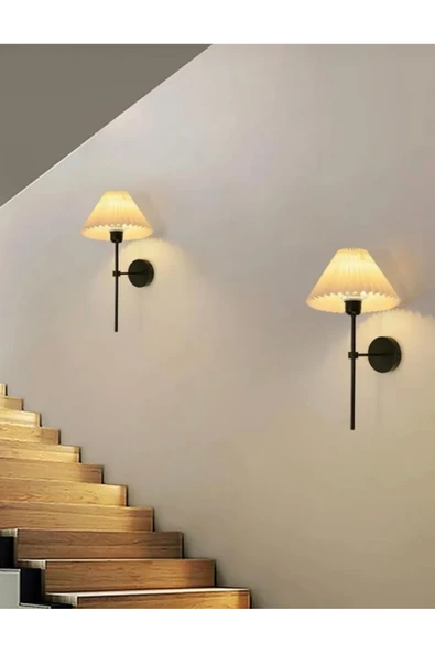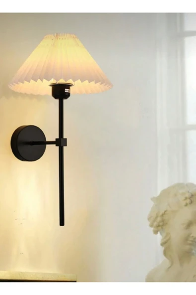 burenze Modern Tasarım Umbrella Pilli Aplik Pileli Krem Abajur Kablosuz Tak Çalıştır Siyah Gövde