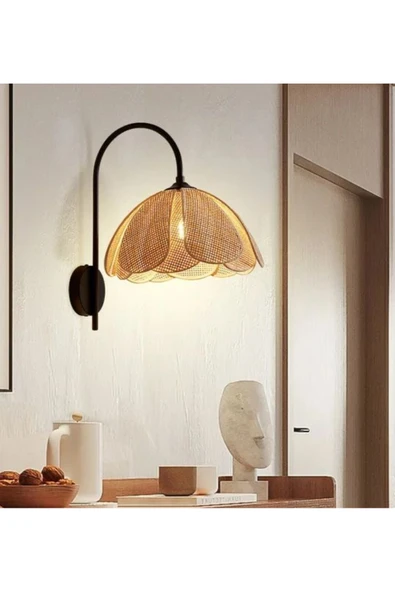 burenze Modern Bohem Tasarım Rose Çiçek Aplik Kablosuz Pilli Aplik Hazeran Hasır Kumaş Eskitme Gold