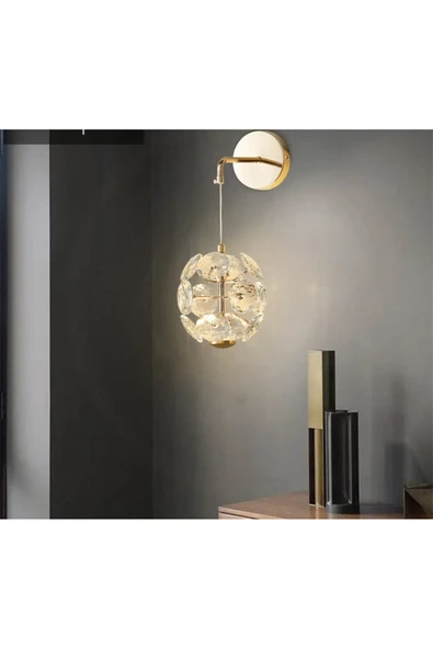 burenze Modern Luxury Kristal Taşlı Ledli Aplik Gold Eskitme Concept Ürün