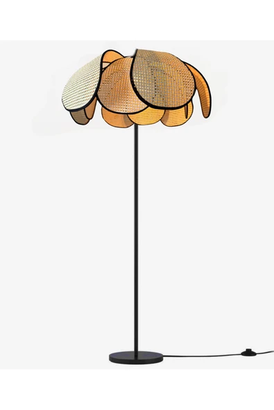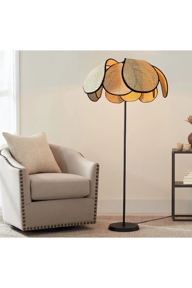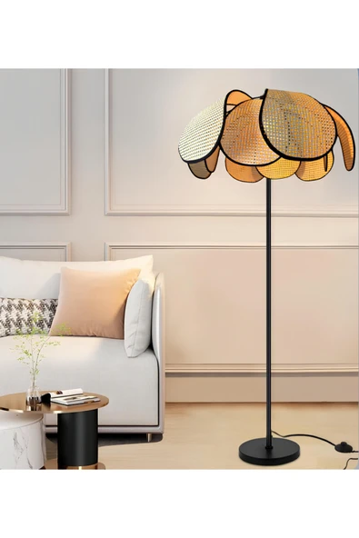 burenze Boheme Modern Tasarım Palm Burenze Lambader Hasır Hazeran Kumaş Abajur Siyah Gövde Dekoratif Ürün