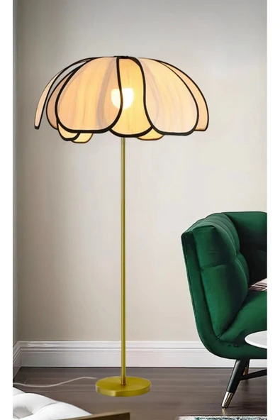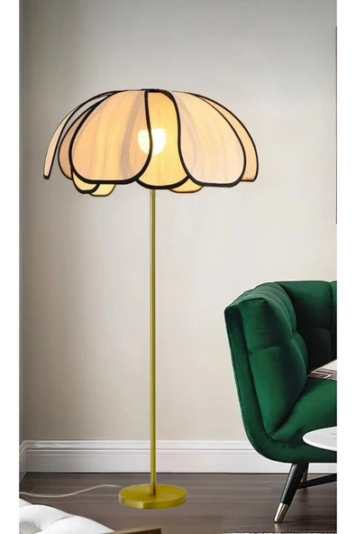 burenze Boheme Modern Tasarım Palm Burenze Dekoratif Lambader Eskitme Gold Gövde Ekru Kumaş Abajur