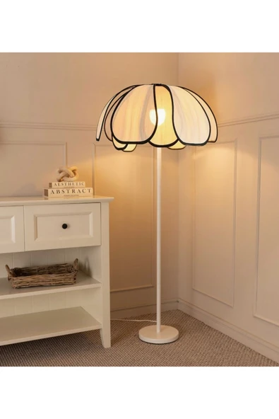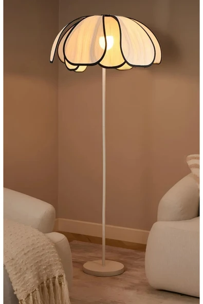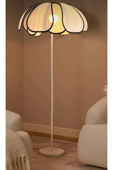 burenze Boheme Modern Tasarım Palm Burenze Dekoratif Lambader Beyaz Gövde Ekru Kumaş Abajur