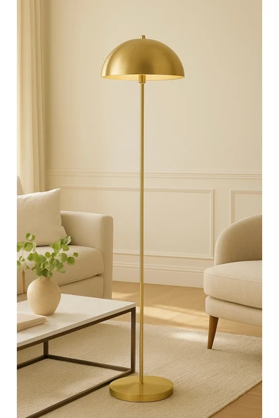 Fico Home Modern Tasarım Torche Ayaklı Lambader Eskitme Gold Gövde Metal Abajur Lambader