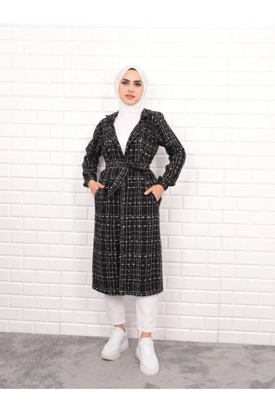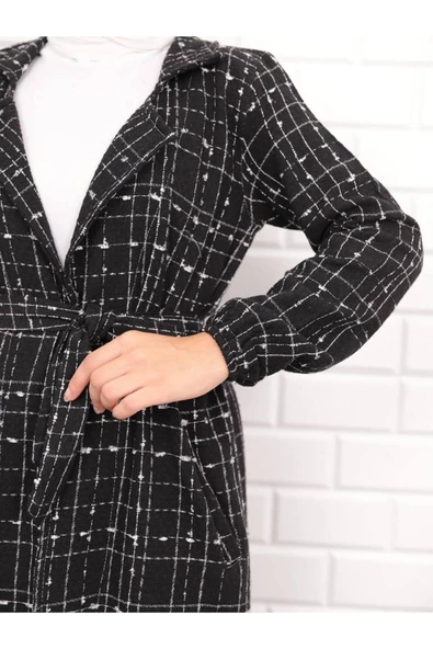 Kadın Otantik Muz Desen Keten Linen Tesettür Elbise
