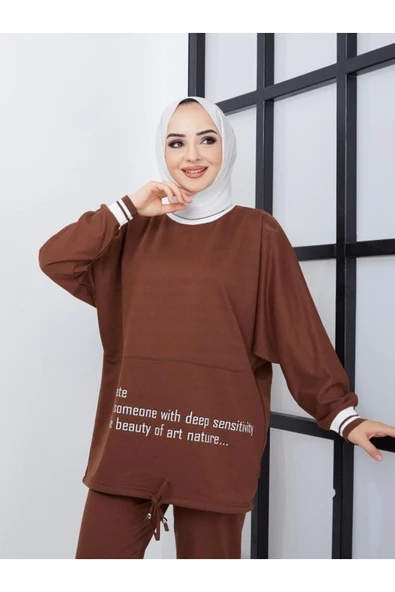 Kadın Şal Nakış Işleme Çift Taraflı Bone Koyu Vizon