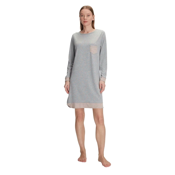 Anıl 11275 Kadın Pamuklu Uzun Kollu Gecelik