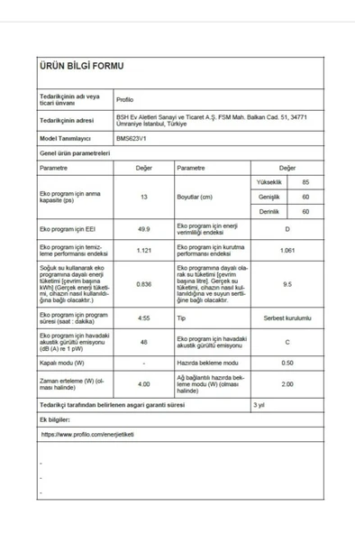 BMS623V1 6 Programlı Bulaşık Makinesi