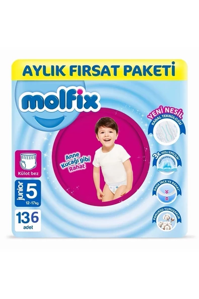 Molfix Külot Bebek Bezi 5 Beden Junior Aylık Avantaj Paketi 136 Adet (68 X 2 )