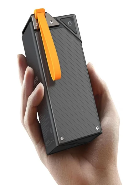 ÇELİKWORK 30,000mah Güneş Enerjili Powerbank 2 Usb, Mikro Lightning Type-c Kablolu Fenerli Taşınabilir Batarya
