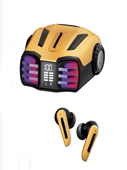 Kablosuz Bluetooth 5.4 Kulaklık 300mAh Batarya, RGB Işık, 10m Menzil Sarı