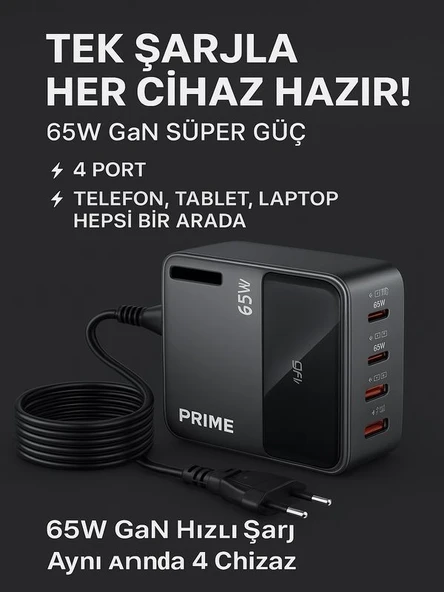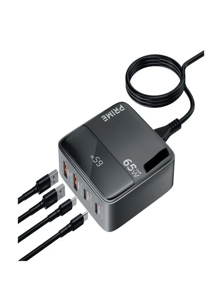 65W GAN 3A 4 Portlu 1,5 Metre Uzatma Kablolu USB + Type-C Çoklayıcı Masaüstü Şarj Cihazı
