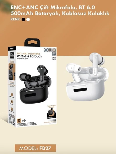 ENC+ANC IPX4 Su Geçirmez Çift Mikrofonlu BT 6.0 500mAh Kablosuz Bluetooth Kulaklık - TWS