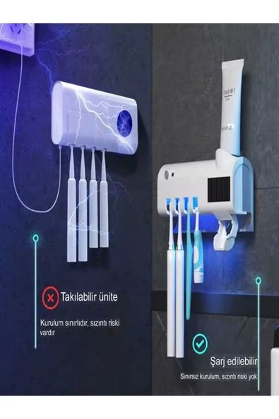 DEANB Şarjlı UV Diş Fırçalık Sterilizatör Sensörlü Duvara Monte Diş Fırçası Tutucu Banyo Düzenleyici