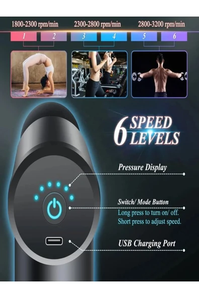 DEANB AM0G6 4 Yedek Kafa 6 Kademe Elektrikli Kas Masajı Vurmalı Masaj Aleti Taşınabilir Güçlü Tüm Vücut