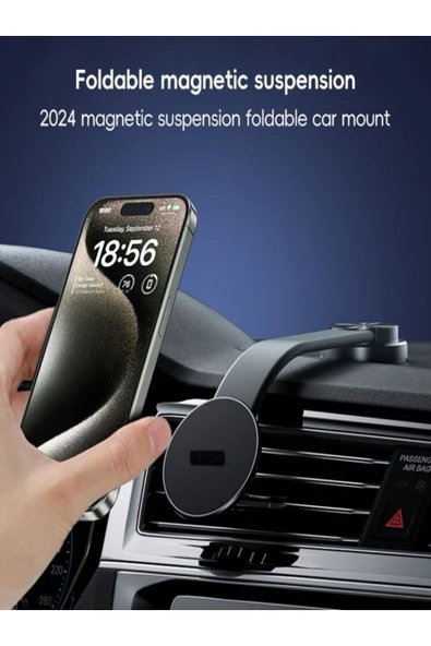 DEANB 15W Magsafe Uyumlu Kablosuz Araç İçi Telefon Tutucu | 3A Hızlı Şarj | Havalandırma Tipi 2in1 Stand