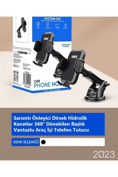 DEANB T-78 360° Dönebilen Hidrolik Kanatlı Vantuzlu Araç Içi Telefon Tutucu Ayna Torpido Montajı Tutacak