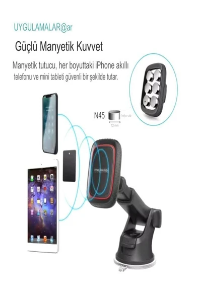 DEANB 360° Dönme Özellikli Strong Mıknatıslı Araç Içi Telefon Tutacağı Vantuzlu Sağlam Ve Pratik Tutacak