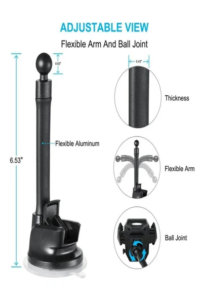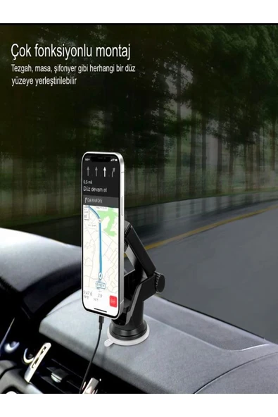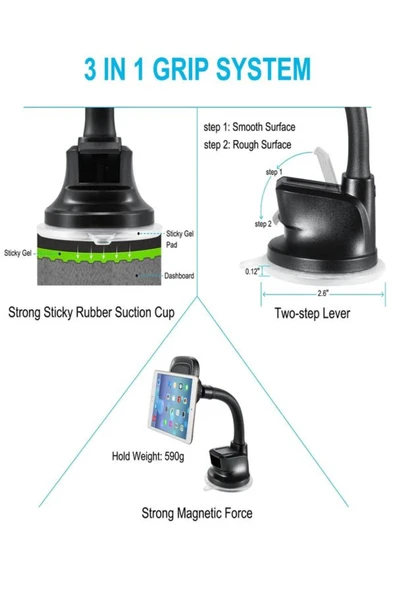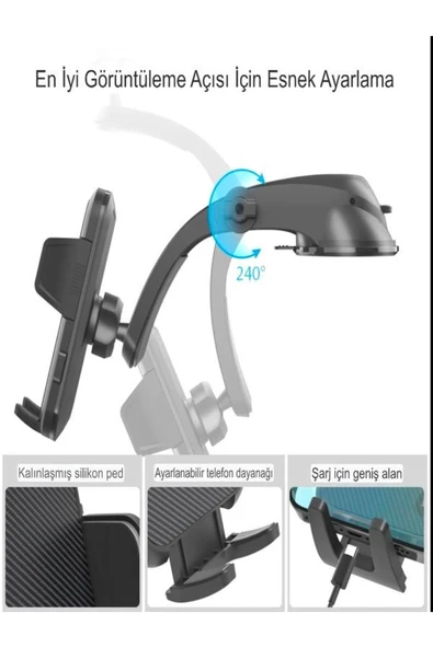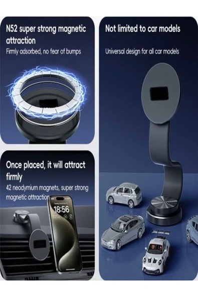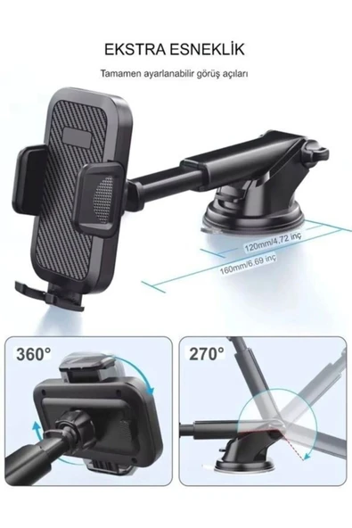 DEANB T-35 360° Dönebilen Mıknatıslı Uzayan Vantuzlu Tutacak Araç Içi Telefon Tutucu