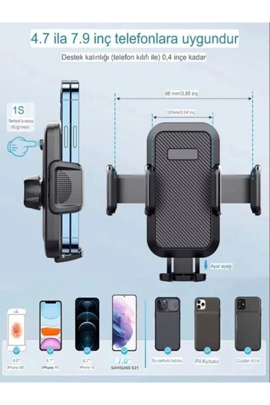 DEANB T-17 3'lü Kaymaz Araç Içi Telefon Tutucu – Ayarlanabilir Oto Telefon Standı (ANTİ-SLİP)