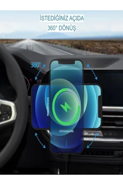 DEANB Fhd-14 360° Wireless Kablosuz 15w Şarj Mıknatıslı Tutacak Havalandırma Için Araç Içi Telefon Tutucu