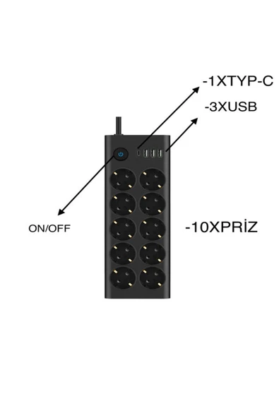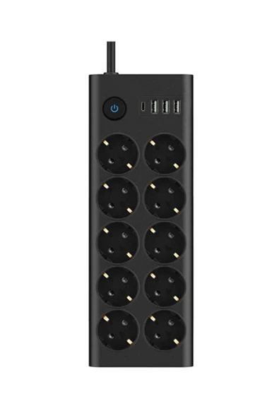 ÇELİKWORK 10'lu PRİZ, 3 USB, 3.4 Amper, 1 Type-C Girişli 16A Akım Korumalı Uzatma Kablolu Priz Çoklayıcı