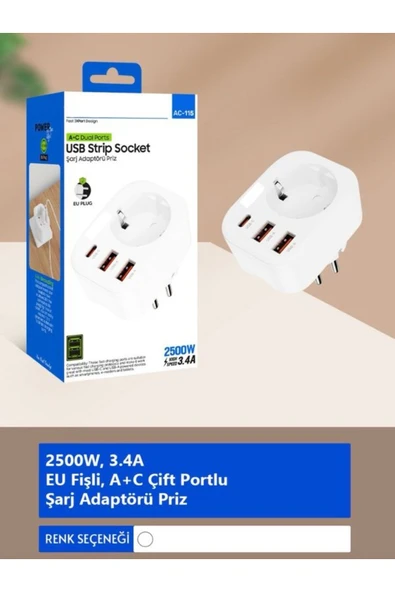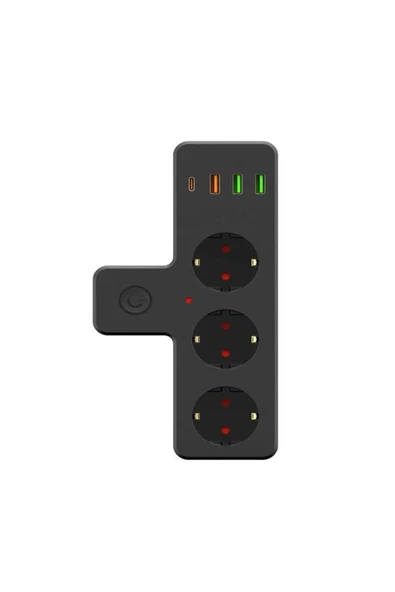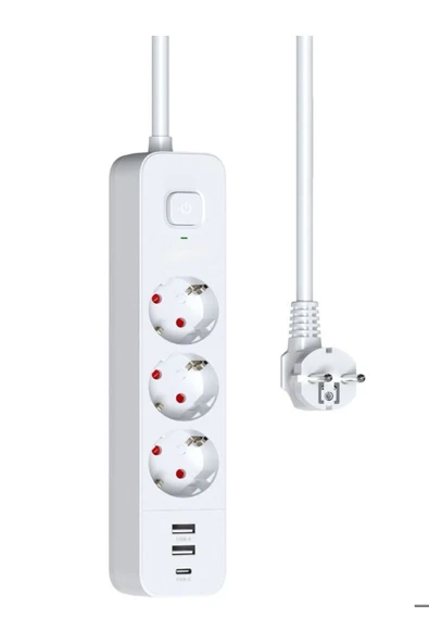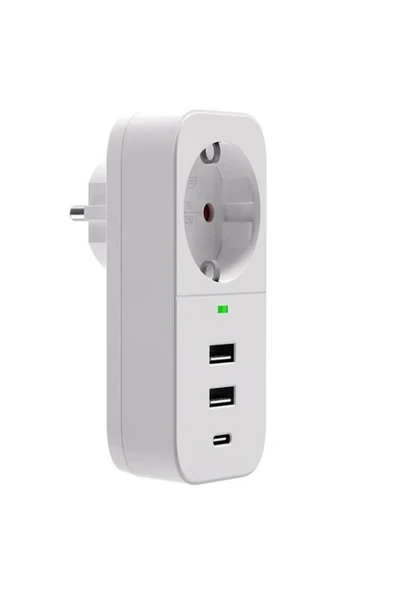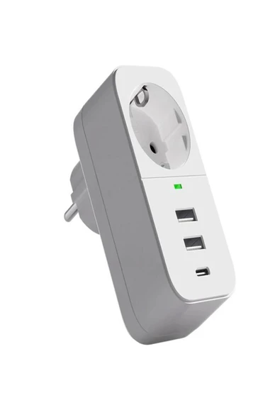 DEANB AC-115 2500W 3.4A 2USB 1Type-C 1Soket Akım Korumalı Şarj Adaptörü Priz Çoğaltıcı