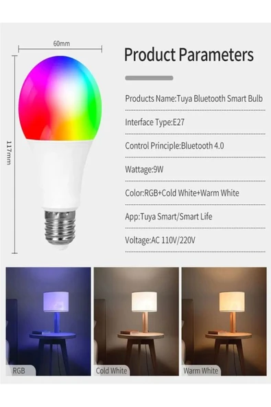 DEANB A+ 9Watt RGB+CCT App WiFi Kontrollü Tuya Destekli LED Lamba 2700/6500K 8W-1000LM