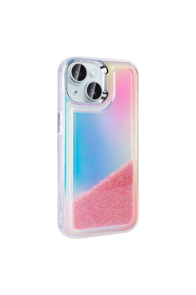 CEPCASE Apple iPhone 14 Kılıf Parlak Renkli Boncuk Kinetik Kumlu Sıvılı Arka Yüzey Antişok Kapak