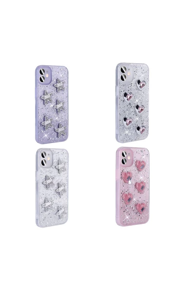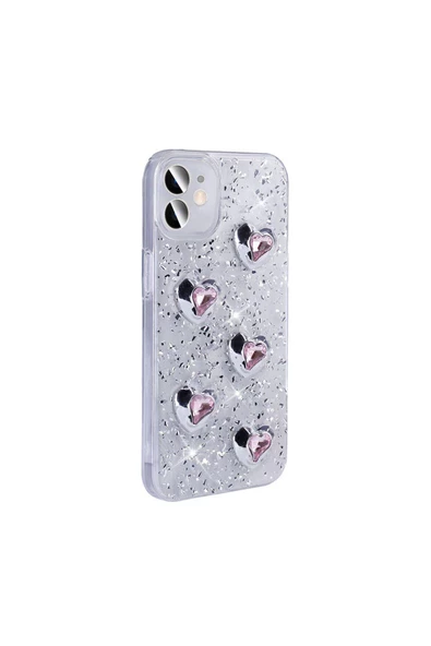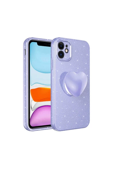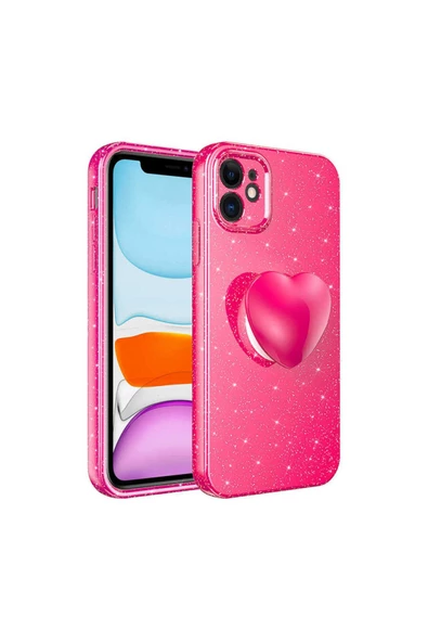 CEPCASE Apple iPhone 11 Kılıf Happy Love Simli Airbagli Işıltılı Tam Kalıp Silikon Kapak