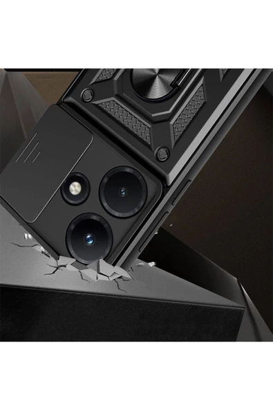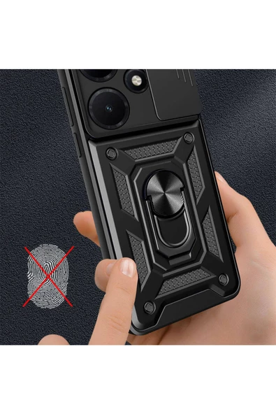 CEPCASE İnfinix Hot 30İ Kılıf Standlı Magnet Mıknatıslı Yüzük Sürgülü Kamera Armored Zırhlı Kapak