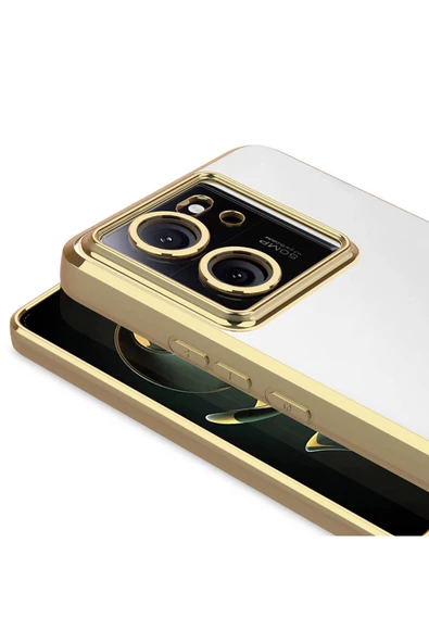 CEPCASE Iphone 13 Kılıf Kenarları Parlak Gold Tasarım Pastel Renk Tasarımlı Kapak