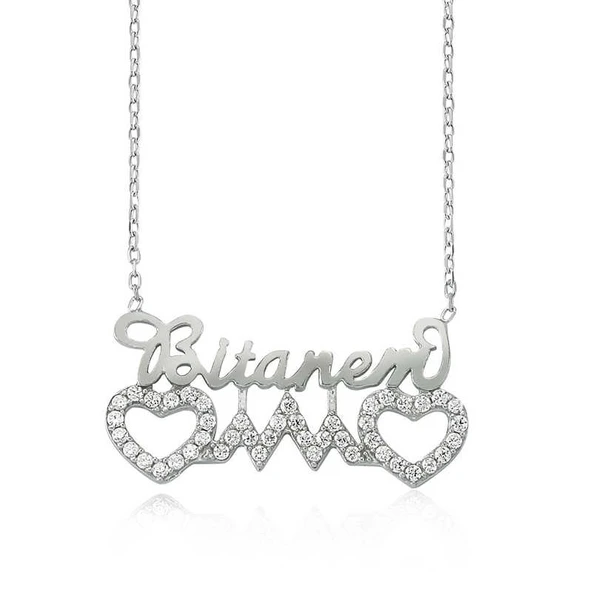 Gümüş Bitanem Yazılı Kalp Bayan Kolye